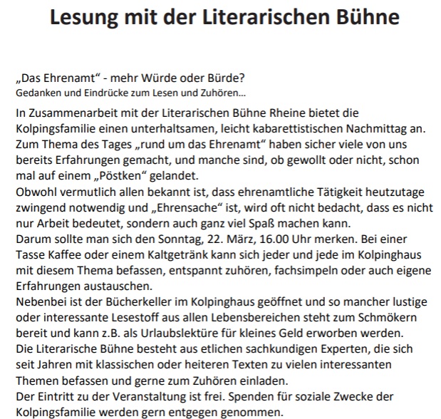Lesung im Kolpinghaus